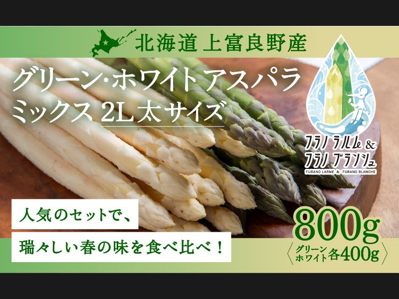 北海道・上富良野町産 グリーンアスパラガス「フラノラルム」&ホワイトアスパラガス「フラノブランシュ」2Lサイズ 800g(目安18~20本...