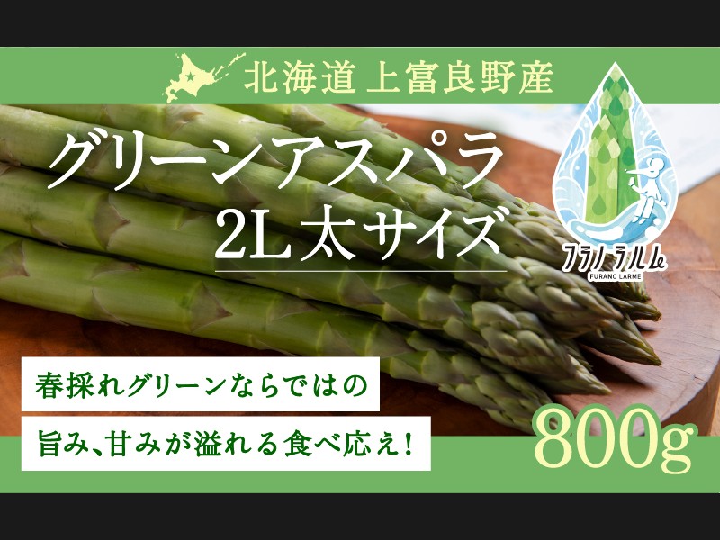北海道・上富良野町産 グリーンアスパラガス「フラノラルム」2Lサイズ 800g(目安17~21本) 北海道らしい力強い太さと、じゅわっと...