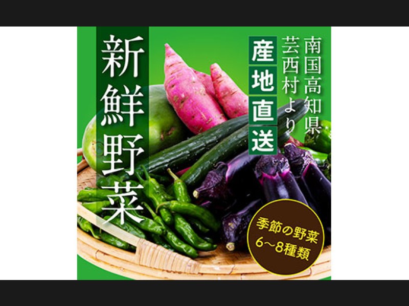 芸西村で採れた新鮮な野菜6~8種類をお届けします。新鮮なうちに食べきれる量なので、芸西村の新鮮な野菜をおためしで味わってください...