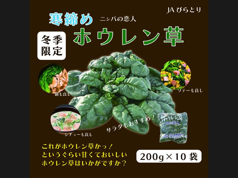 【商品詳細】 北海道平取町の凍てつく冬の寒さの中、町内の生産者が丹精込めて生産した寒締めホウレン草(ちぢみほうれん草)です。 ...