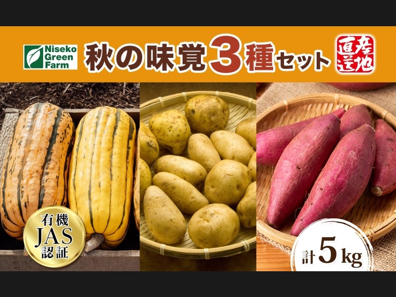 【2025年10月上旬~2025年11月下旬頃まで発送】 ニセコグリーンファームの、有機野菜3種。 秋の味覚セット(かぼちゃ・じゃがいも・...