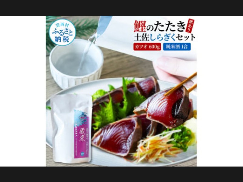 すっきりとした透明感の中に米の旨味が感じられる芸西村自慢の銘酒「しらぎく純米酒」と高知の酒の肴の代表格「カツオのたたき」をセッ...