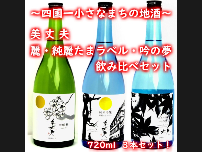 四国一小さな町の美丈夫「吟醸 麗」「純米吟醸 純麗たまラベル」「純米大吟醸 吟の夢」の3種類(720mL×3種類)をセットにしてお届け...
