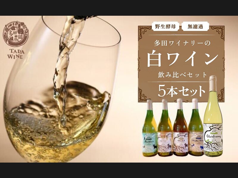 多田ワイナリーの白ワイン5本セットをお送りします。 真冬は30℃近くにもなる厳しい環境の中で育ったぶどうを、野生酵母で発酵させた無...