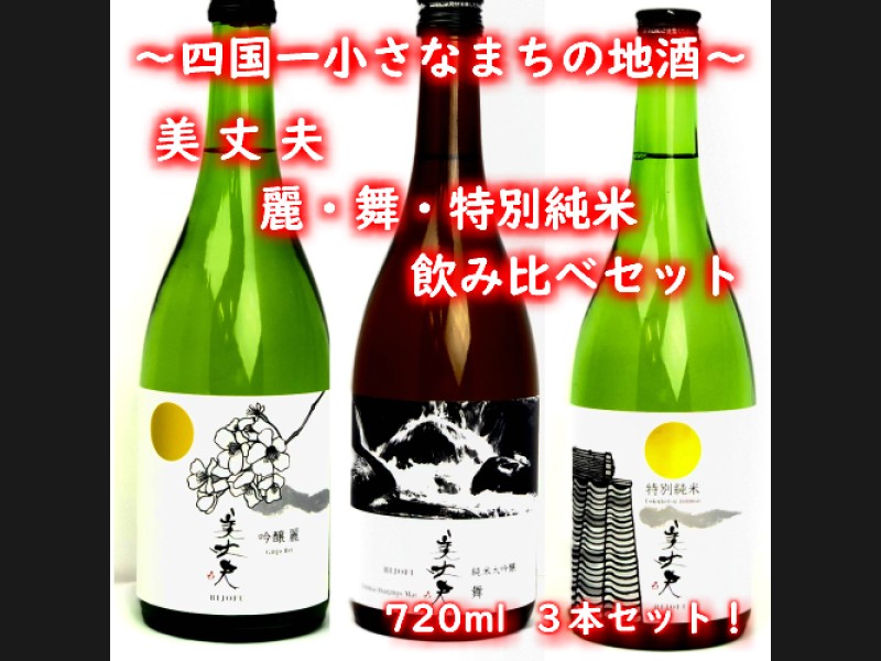 四国一小さな町の美丈夫「吟醸 麗」「純米大吟醸 舞」「特別純米」の3種類(720mL×3種類)をセットにしてお届けします。 【美丈夫...