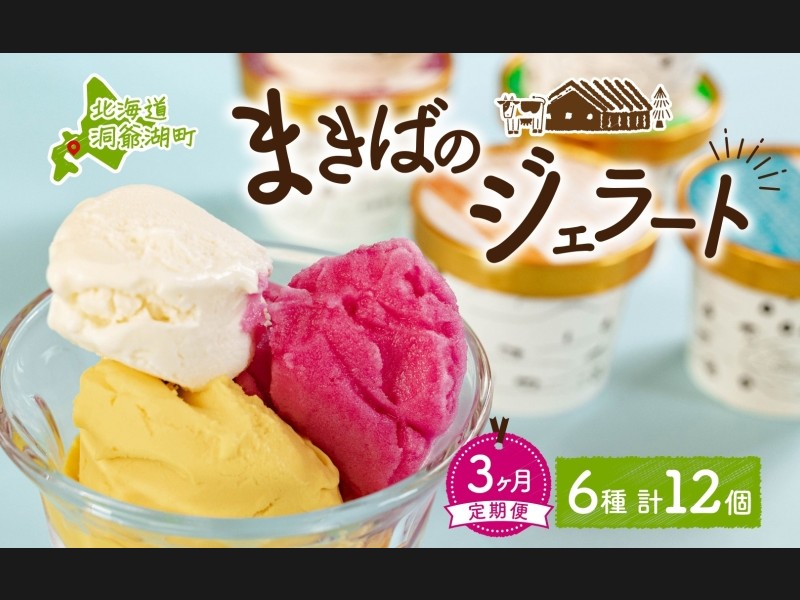定期便 3ヵ月 連続 全3回 北海道 まきばのジェラート 6種 各2個 計12個 セ...