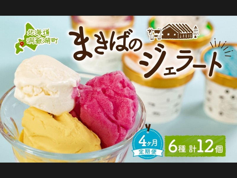 定期便 4ヵ月 連続 全4回 北海道 まきばのジェラート 6種 各2個 計12個 セ...