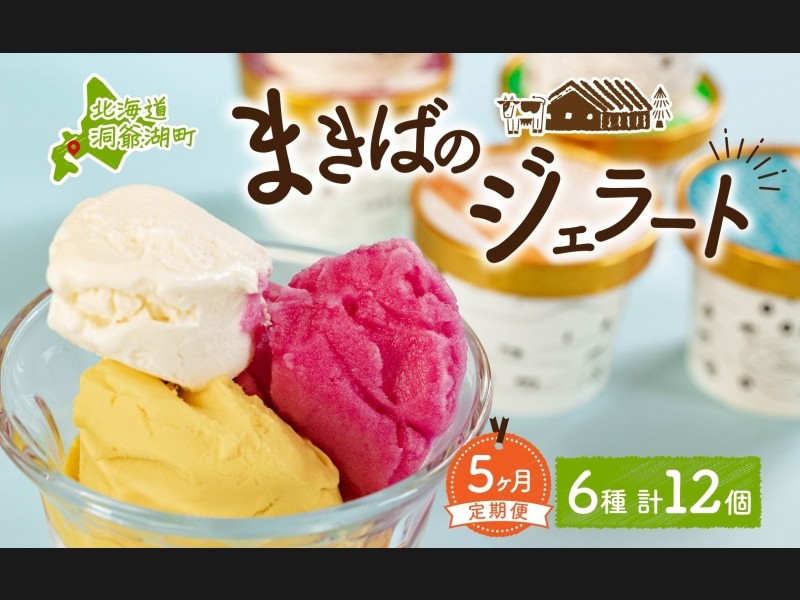 定期便 5ヵ月 連続 全5回 北海道 まきばのジェラート 6種 各2個 計12個 セ...