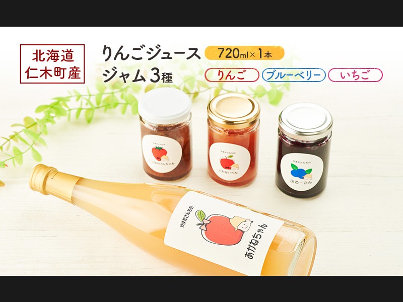 北海道 仁木町産 りんごジュース 720ml×1本 ジャム 3種 (りんご・ブルー...