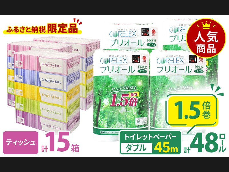 プリオール・ピコ トイレット ペーパー 1.5倍巻き ダブル 45m 12ロール 4...