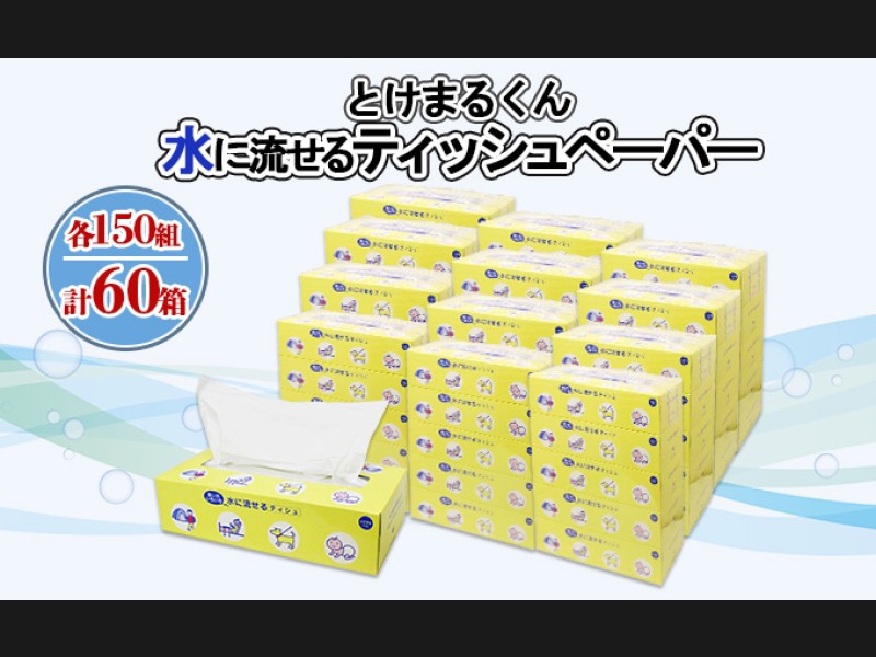 水に流せる とけまるくん BOXティッシュ 150組 60箱 日本製 まとめ買い リ...