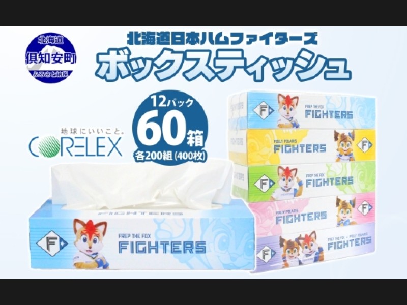 北海道日本ハムファイターズ ボックスティッシュ 200組 400枚 60箱 日本製...