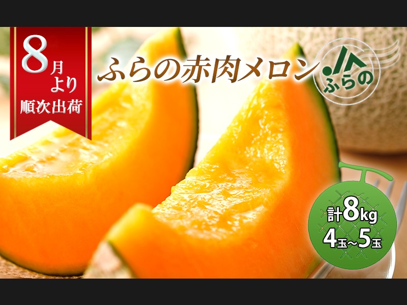 2026年夏発送 メロン 北海道 ふらの 赤肉 メロン 4~5玉(計8kg) JAふら...