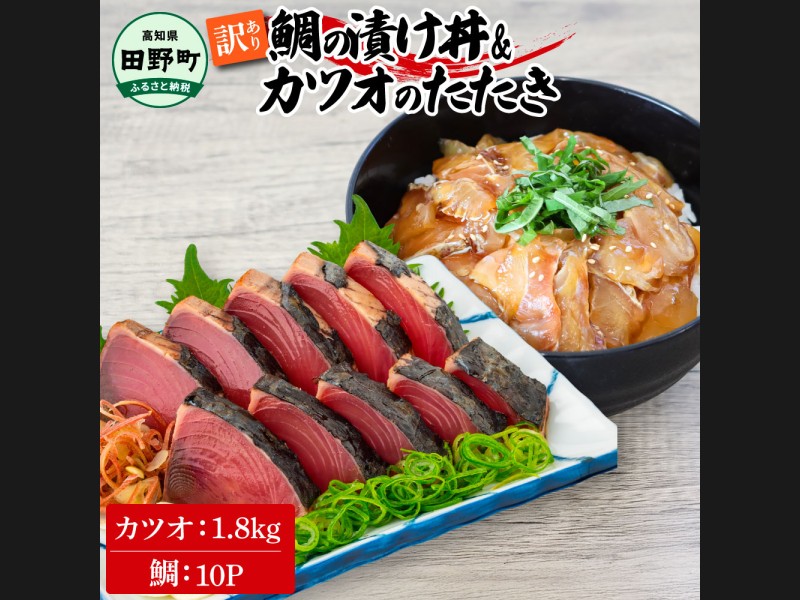 ~四国一小さなまち~ 訳あり 鯛の漬け丼(80g×10P)&カツオのたたき(1.8kg...