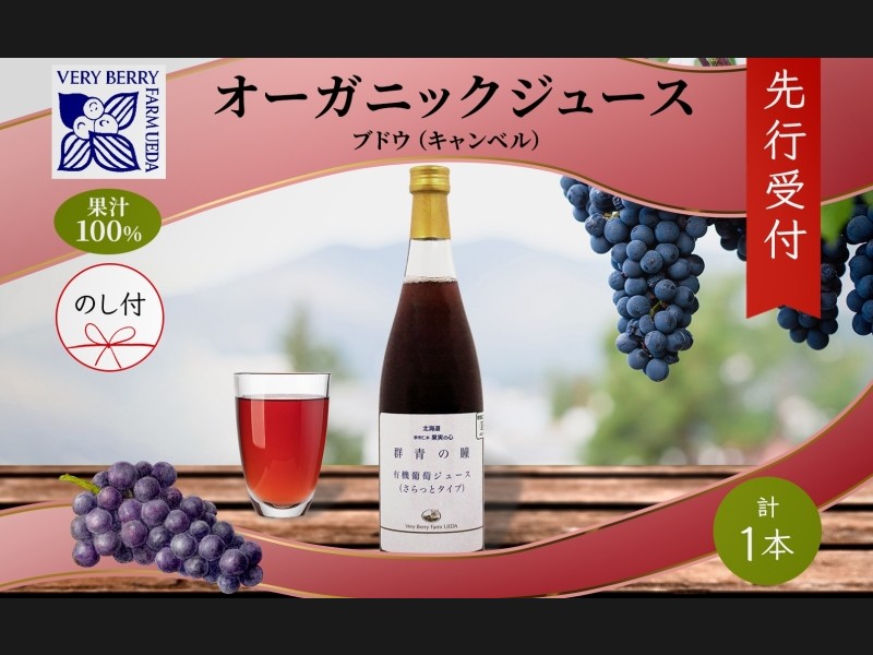 果実だけをまるごと搾った、キャンベル果汁100%ジュース 北海道の農園で、人の手で丁寧に有機栽培された「ブドウ(キャンベルアーリ...