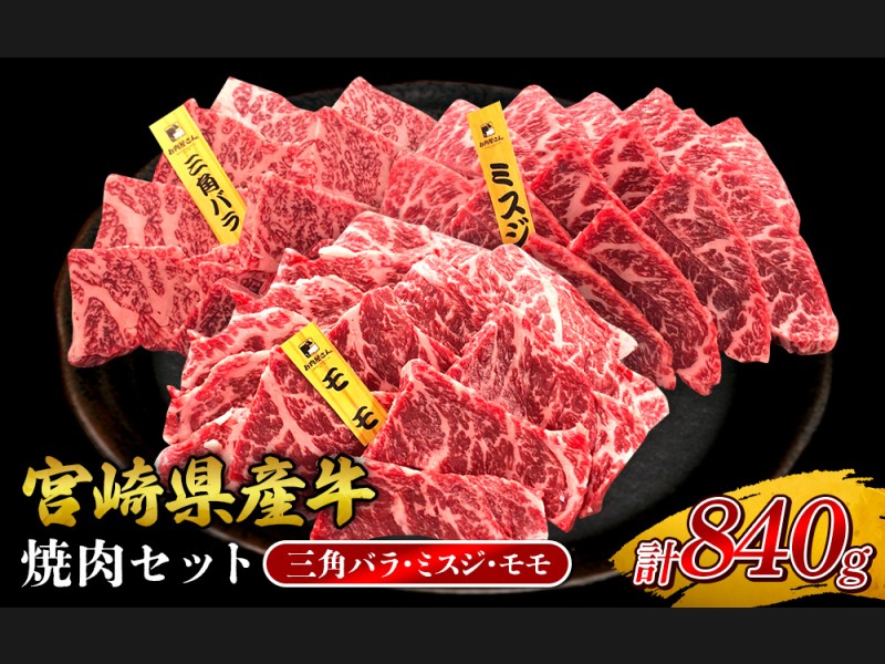 宮崎県産 黒牛 焼肉 赤身 牛肉 焼肉セット 三角バラ ミスジ モモ 3点盛り ...