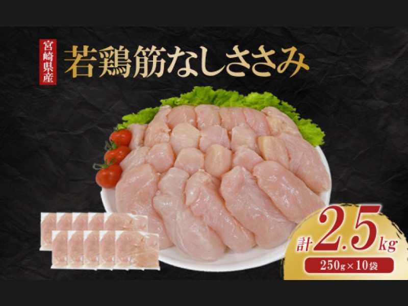 宮崎県産 若鶏筋なしささみ 2.5kgセット (250g×10袋) 鶏肉 ささみ 鶏ささ...