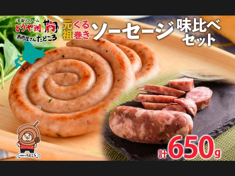 北海道 元祖ぐる巻き ソーセージ 味くらべ 計650g 豚肉 粗挽き にんにく ...
