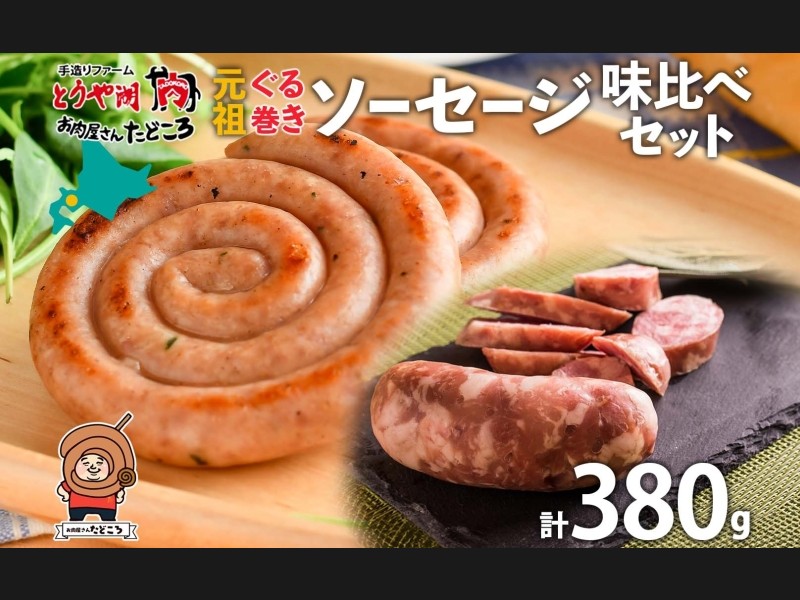 北海道 元祖ぐる巻き ソーセージ 味くらべ 計380g 豚肉 粗挽き にんにく ...