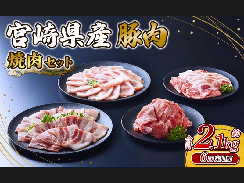 【6回定期便】豚肉 宮崎県産 いもこ豚 焼肉 セット 2.1kg × 6回 総合計 12...