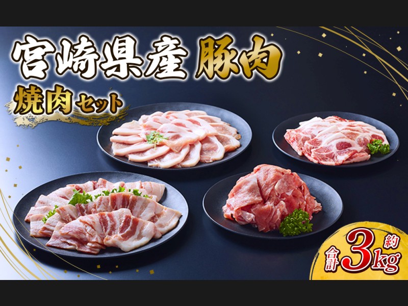 【3回定期便】豚肉 宮崎県産 いもこ豚 焼肉 セット 3kg × 3回 総合計 9kg ...
