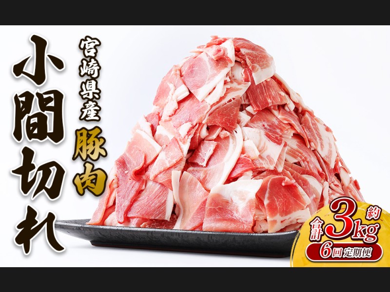 【6回定期便】豚肉 いもこ豚 小間切れ 3kg(500g×6パック)× 6回 合計 18k...