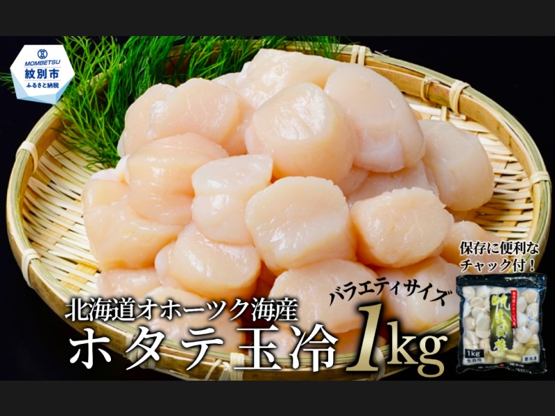 22-146 北海道オホーツク海産ホタテ玉冷バラエティサイズ(1kg)| 訳あり サイズ不揃い