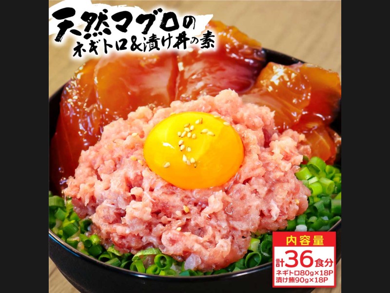 マグロの漬丼18食とマグロのネギトロ18食をセットに仕立てました。マグロ漬丼の上にネギトロを乗せてマグロづくしでお楽しみください。 ...