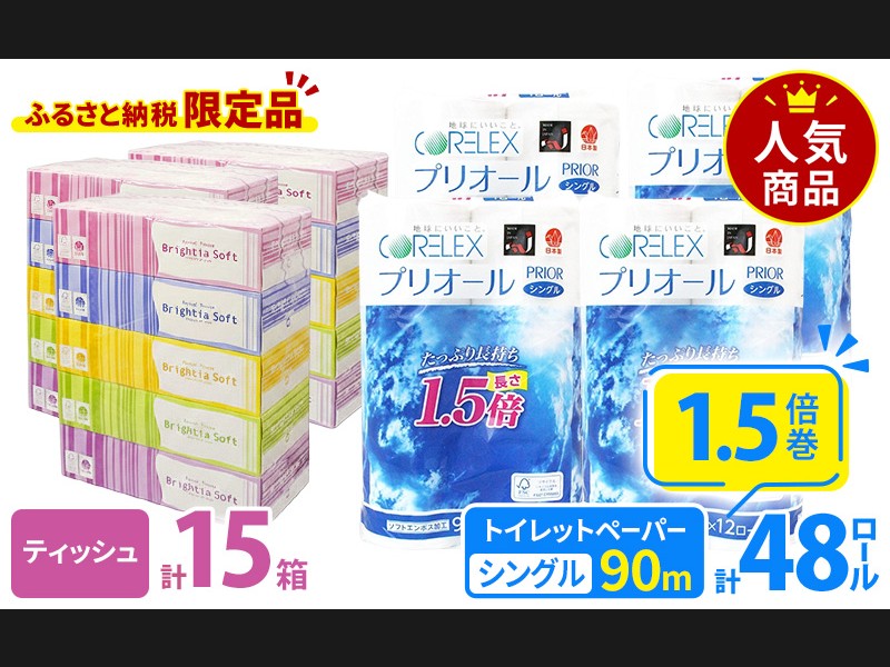 プリオール・ピコ トイレット ペーパー 1.5倍巻き シングル 90m 12ロール ...