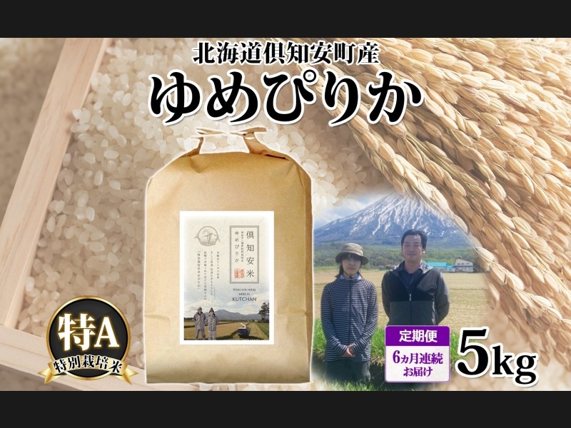 定期便 6ヵ月連続 全6回 北海道 倶知安町産 ゆめぴりか 特別栽培米 精米 5...