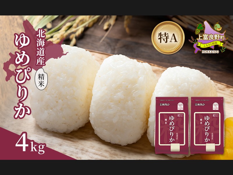 北海道産 ゆめぴりか 精米 4kg 米 特A 獲得 白米 ごはん 道産米 ブランド...