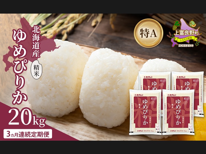【3ヵ月連続定期便】北海道産 ゆめぴりか 精米 20kg 米 特A 獲得 白米 ご...