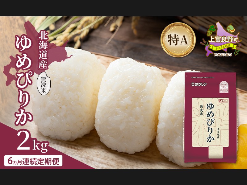 【6ヵ月連続定期便】北海道産 ゆめぴりか 無洗米 2kg 米 特A 獲得 白米 ご...