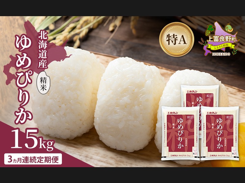 【3ヵ月連続定期便】北海道産 ゆめぴりか 精米 15kg 米 特A 獲得 白米 ご...