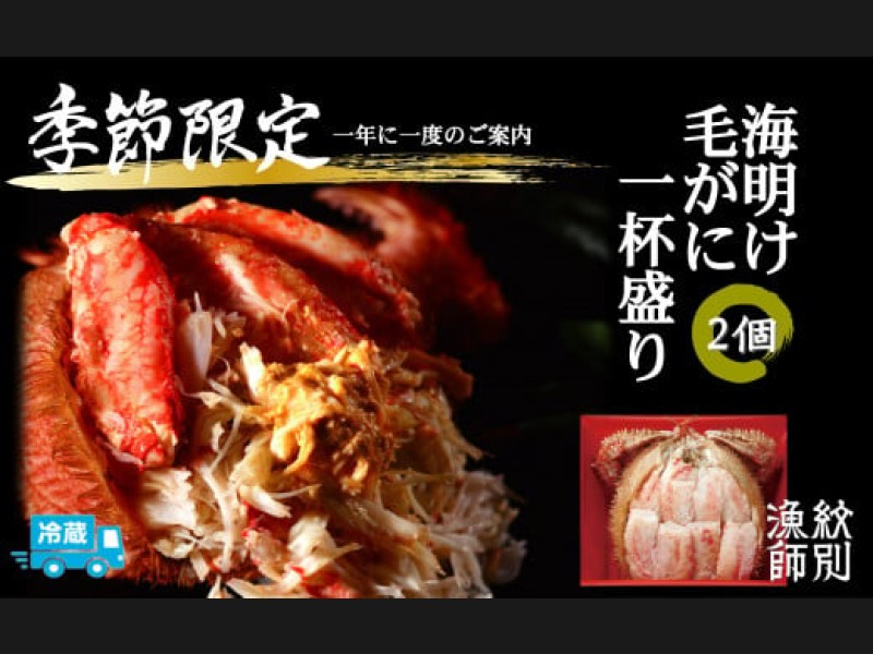 4・5月のみの限定品(5月18日入金確認分まで) 流氷が開けたオホーツク紋別の旬の毛がに【一杯盛り】をチルドでお届けします。 浜から...