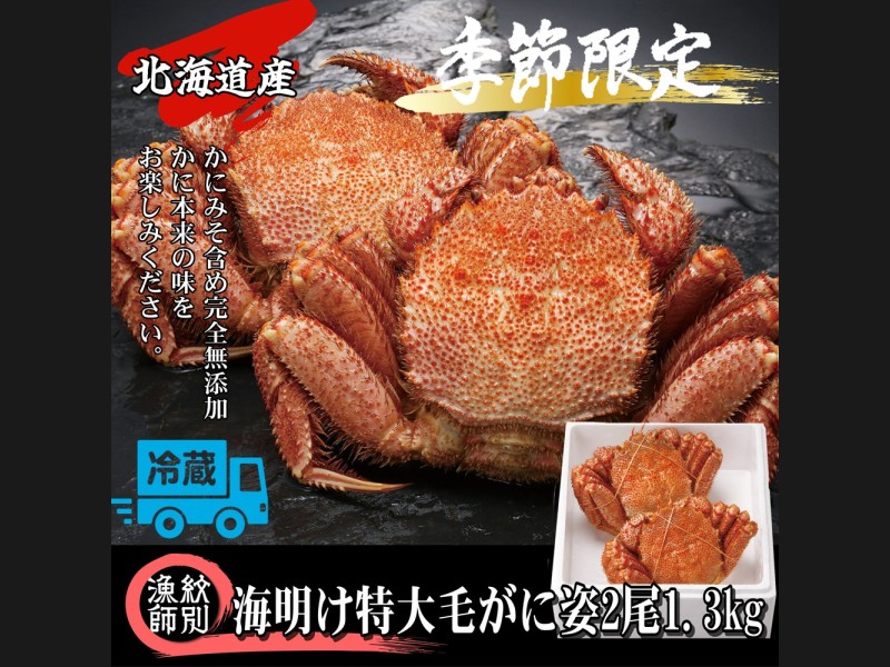 65-9 【北海道産】特大海明け毛がに姿 2尾計約1.3kg【期間限定5月18日まで...