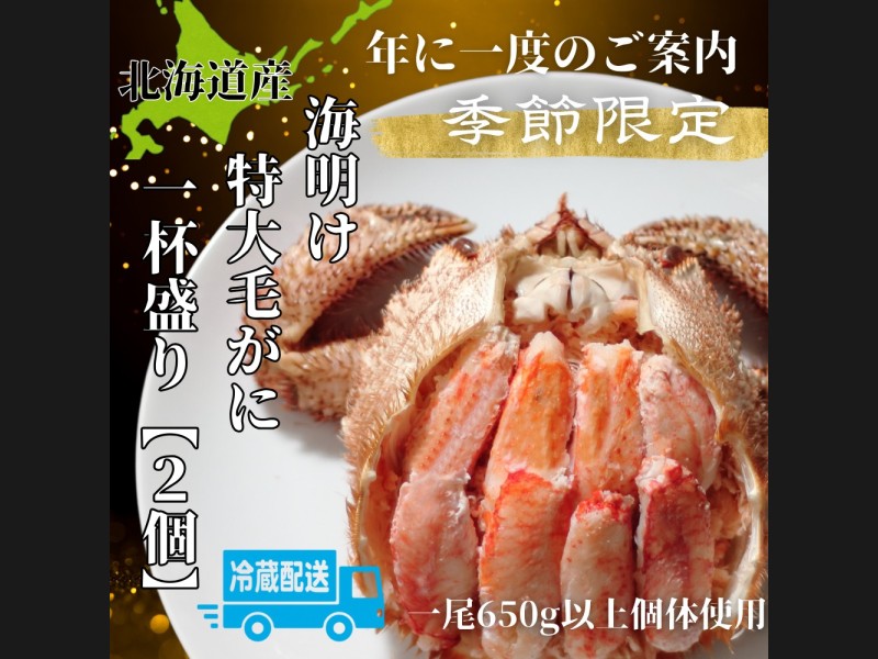 72-18 【北海道産】特大海明け毛がに一杯盛り約650g以上の毛がに2尾使用【...
