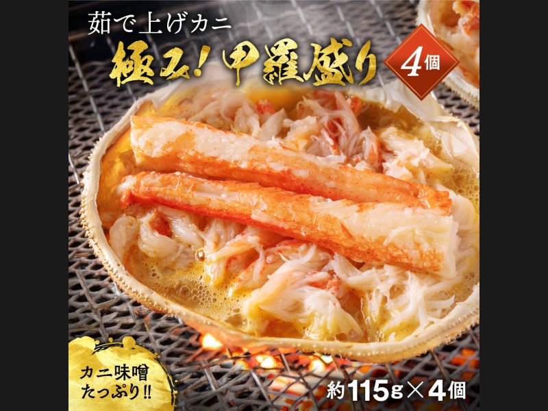 16-113 極上!茹で上げカニ甲羅盛4個(棒肉のせ)【カニミソたっぷり】