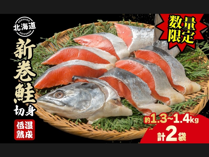 【数量限定・特別寄附額】北海道産 新巻鮭 低温熟成 切身 約1.3~1.4kg計2...