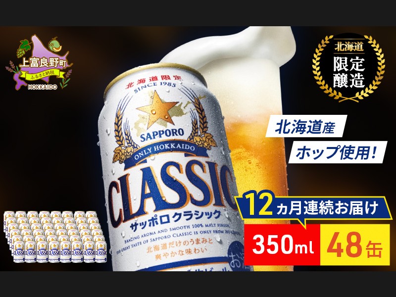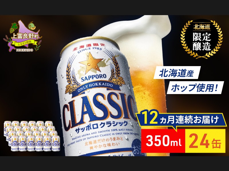 【12回定期便】ビール サッポロクラシック 350ml×24缶 缶ビール 定期便 お...