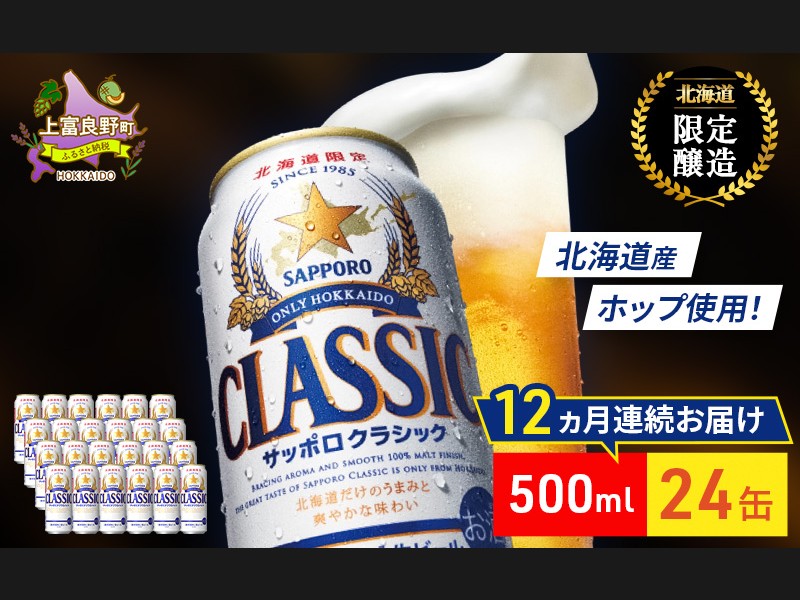 【12回定期便】ビール サッポロクラシック 500ml×24缶 缶ビール 定期便 お...