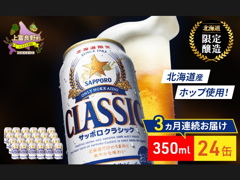 【3回定期便】ビール サッポロクラシック 350ml×24缶 缶ビール 定期便 お...