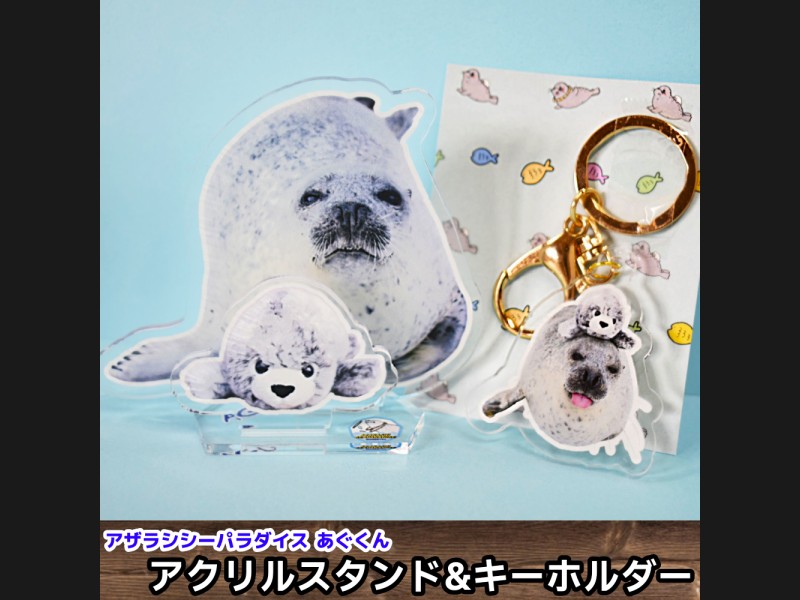 アザラシシーパラダイスのアイドル「あぐ」のアクリルスタンドとキーホルダーのセット。飾るだけで「あぐ」がいつでもそばに! ※発送は...