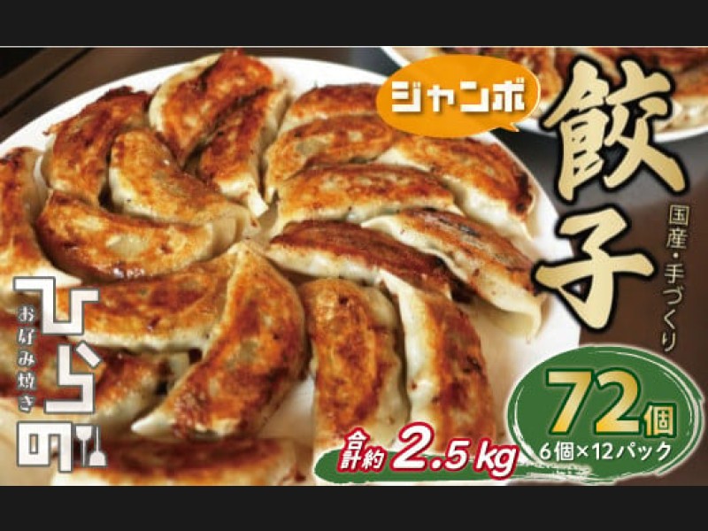 手作り 冷凍 ジャンボ 生餃子 合計 約2.5kg ( 6個 入り × 12パック ) 72...