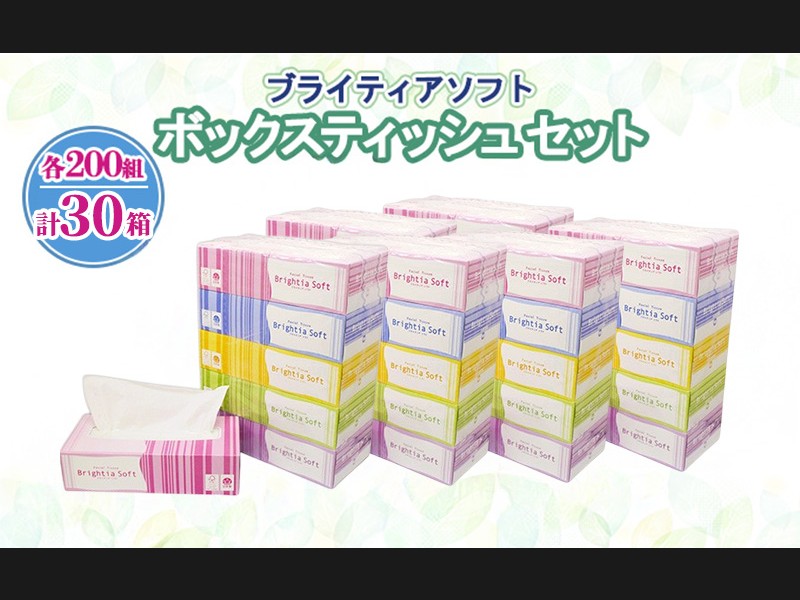ブライティア ソフト ボックスティッシュ 200組 400枚 30箱 (5箱×6) BOX ...