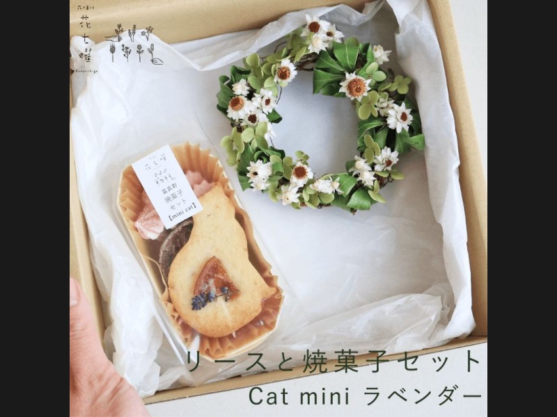 富良野 花七曜 リースと焼菓子セット Cat mini ラベンダー あじさい ◆ ド...