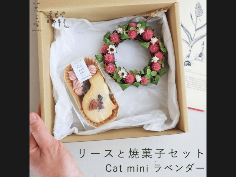 富良野 花七曜 リースと焼菓子セット Cat mini ラベンダー ピンク ◆ ドラ...