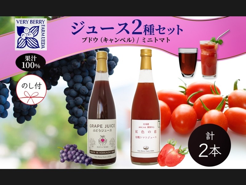 《無地熨斗対応》 北海道の農園で、人の手で丁寧に有機栽培されたミニトマトとブドウ(キャンベルアーリー)のジュースをセットにしま...