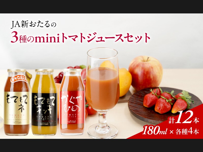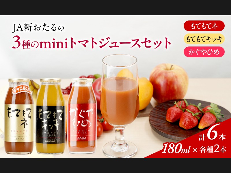 JA新おたるのブランドミニトマト「もてもてネ」、「もてもてキッキ」、「かぐやひめ」を100%原料にした贅沢なトマトジュースを1本180ml...