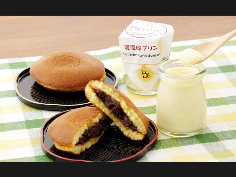 【配送不可:離島】 北海道倶知安町の老舗店「梅月菓子舗」のだちょうプリン&だちょう卵のどら焼セット。 <だちょうプリン> 北...
